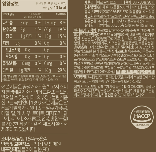 1. 100프로 국내산 15곡 곡물 발효효소 <정제효소 무첨가 / 카페인 무함유>