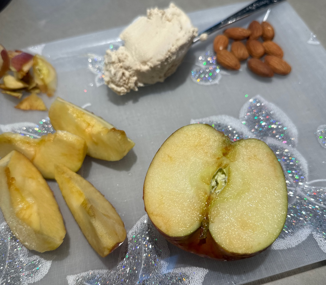 사과한개(레몬즙뿌려서) + 볼비그릭요거트 100g + 아몬드 10-15알을