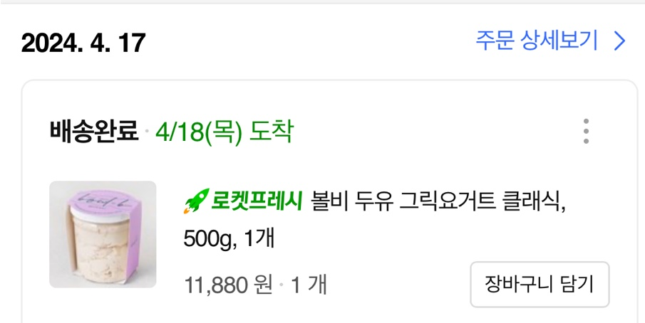 다른걸로 바꿔보자 하면서 주문한 '볼비 그릭 클래식 요거트'