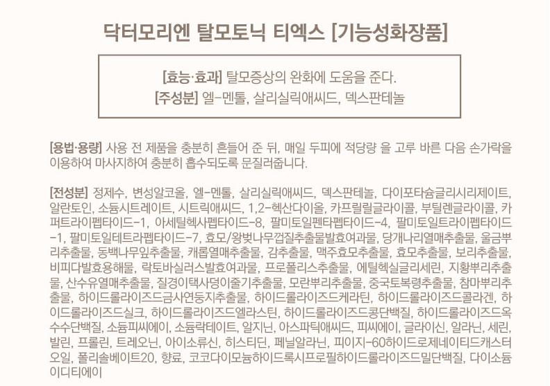닥터모리엔 헤어토닉 성분