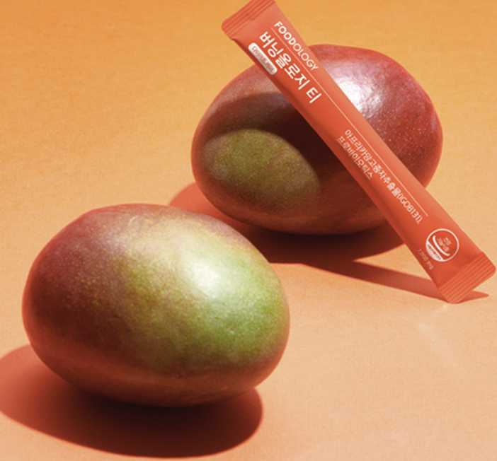 식물성 다이어트 신소재로 식약처에서 인정한 다이어트 기능성 원료인 '와일드 망고'를 함유하고 있어 체지방 감소에 효과적이며 장 건강 핵심 균주로 배합된 프로바이오틱스를 포함하고 있어 장 건강은 물론, 배변활동도 원활해 체지방 감소, 라인관리, 유산균 섭취를 동시에 섭취할 수 있다고 합니다. 버닝올로지 티는 '주황물'이라고도 불립니다.