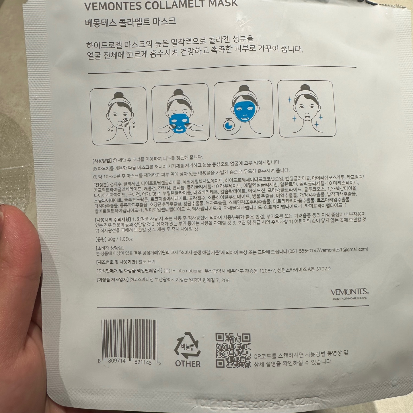 베몽테스 콜라멜트 마스크 주1회 하는게 효과 좋은듯