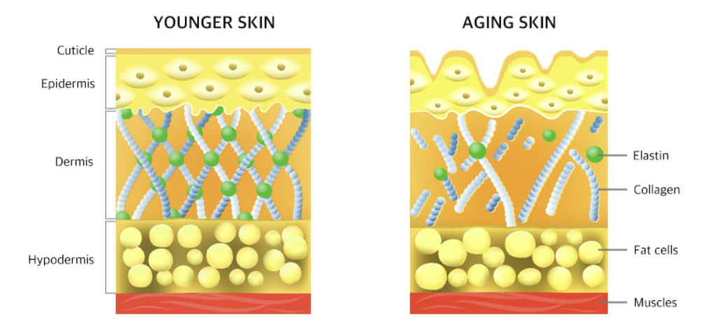 | collagen 콜라겐 신체 대부분에 존재하여 세포와 세포사이를 연결하는 역할을 하는 중요한 단백질 성분으로 피부의 약 70%, 진피의 약90%가 콜라겐으로 구성되어 있습니다. |