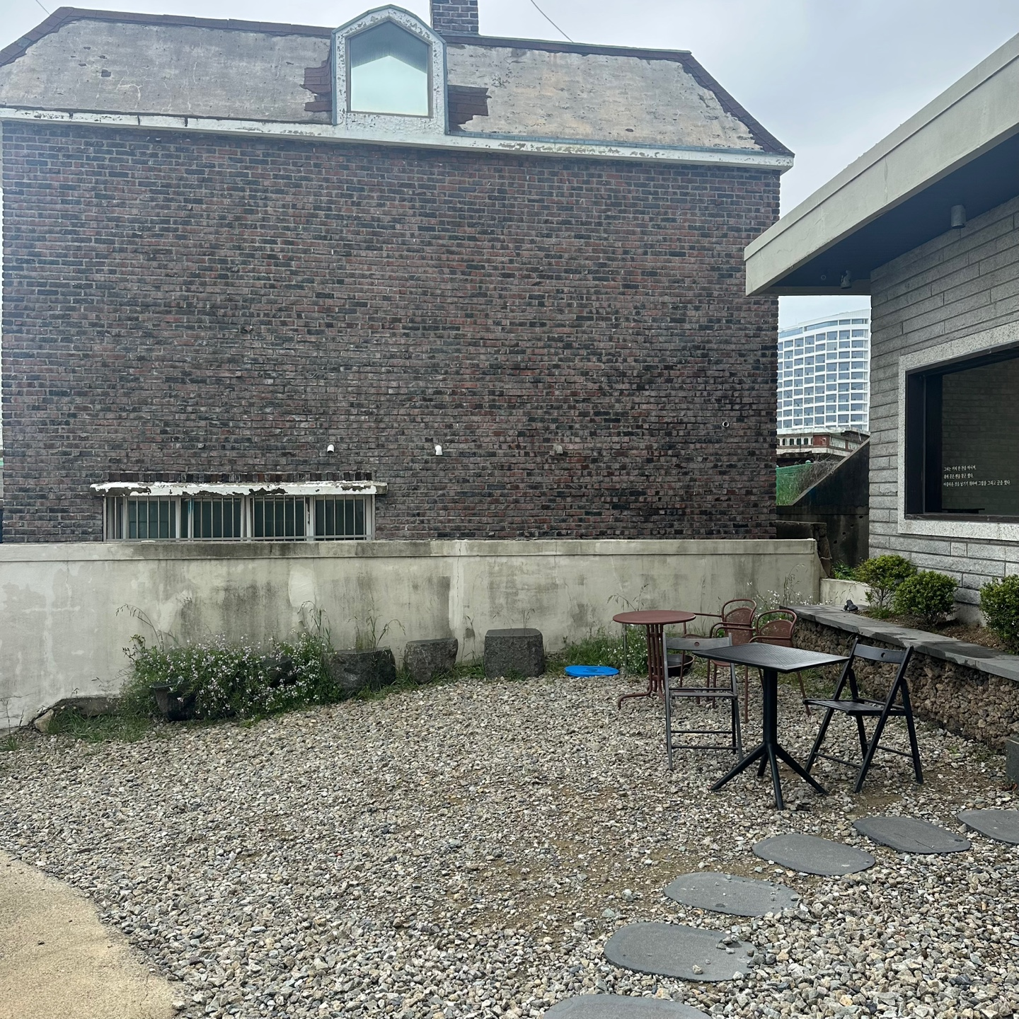 실외에 작은정원 같이 테이블이 여러곳 있어서