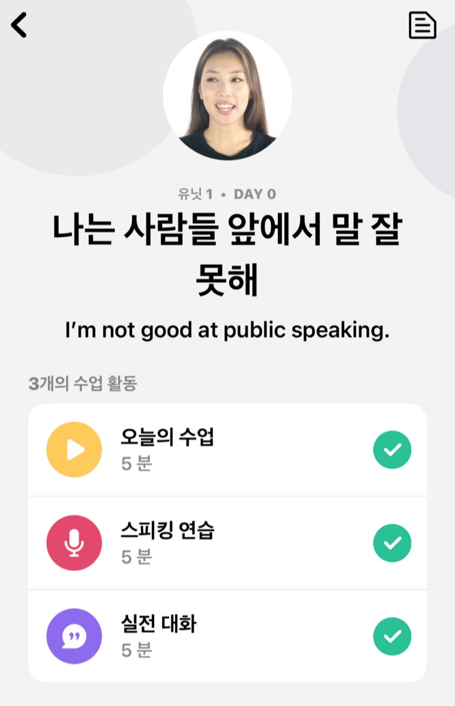 주변 후기들을 살펴보니 단점을 굳이 말하자면 초보자 위주로 커리큘럼이 만들어졌다, 너무 뻔한 주제로 토킹을 한다 라는 후기가 있었고, AI가 진행을 하기에 사용자 음성 인식률이 떨어져서 발음상 오류가 있으면 다음단계로 넘어가지 않는다는 단점의 후기가 있었습니다.