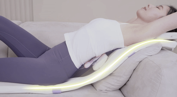 눕거나 앉는 방법에 따라 다양한 마사지 강도 조절이 가능하며 체중이 실릴수록 강력하게 분산될수록 부드럽게 다양한 마사지감을 느낄 수 있습니다.