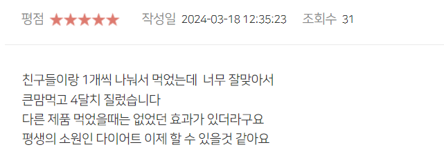 1개월 하루도 빠짐없이 복용했을 때 2킬로가량 감량이 되었다