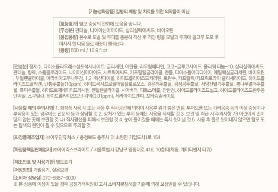 두피가 가렵거나 발진이 일어날시 즉시 사용을 중단하고 전문의와 상담하여야 합니다.